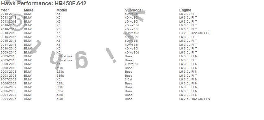 Below is an abreviated list of applications for the HPS Disc Brake Pad.525i, 525xi, 528i, 528i xDrive, 528xi, 530i, 530xi, 535i xDrive, 535xi, X5, X6, BMW, 2019, 2018, 2016, 2015, 2014, 2013, 2012, 2011 moreā¦