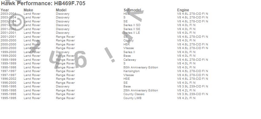 Below is an abreviated list of applications for the HPS Disc Brake Pad.