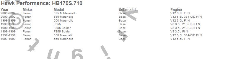 Below is an abreviated list of applications for the HT-10 Disc Brake Pad.550 Maranello, 575 M Maranello, F355, F355 Spider, Ferrari, 2004, 2003, 2002, 2001, 2000, 1999, 1998, 1997 moreā¦