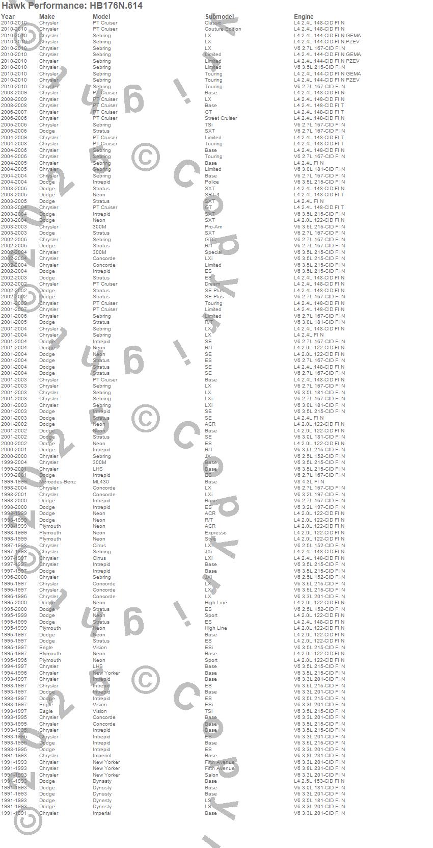 300M, Cirrus, Concorde, Dynasty, Imperial, Intrepid, LHS, ML430, Neon, New Yorker, PT Cruiser, Sebring, Stratus, Vision, Chrysler, Dodge, Eagle, Mercedes-Benz, Plymouth, 2010 moreā¦