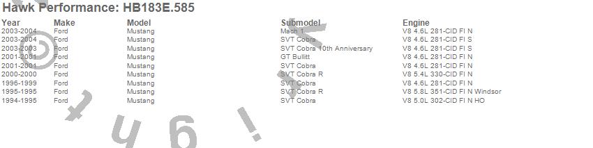 Below is an abreviated list of applications for the Blue 9012 Disc Brake Pad.Mustang, Ford, 2004, 2003, 2001, 2000, 1999, 1998, 1997, 1996, 1995, 1994 moreā¦