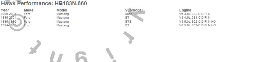 Below is an abreviated list of applications for the HP Plus Disc Brake Pad.