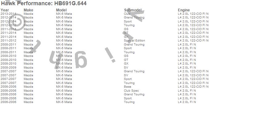 Below is an abreviated list of applications for the DTC-60 Disc Brake Pad.