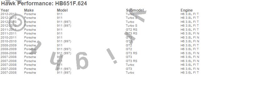 Below is an abreviated list of applications for the HPS Disc Brake Pad.