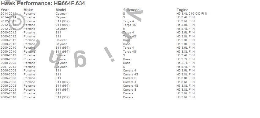 Below is an abreviated list of applications for the HPS Disc Brake Pad.