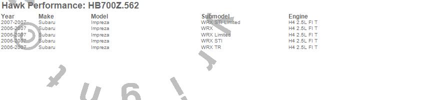 Below is an abreviated list of applications for the Performance Ceramic Disc Brake Pad.Impreza, Subaru, 2007, 2006 moreā¦