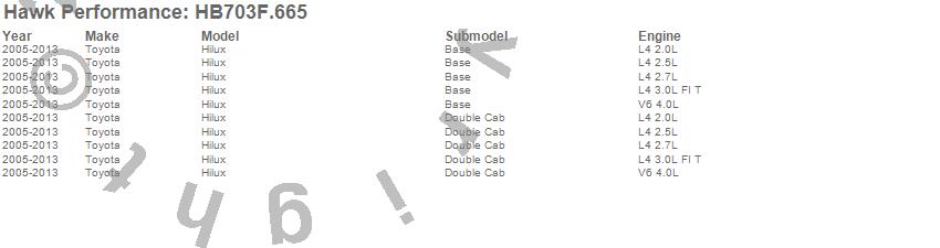 Below is an abreviated list of applications for the HPS Disc Brake Pad.